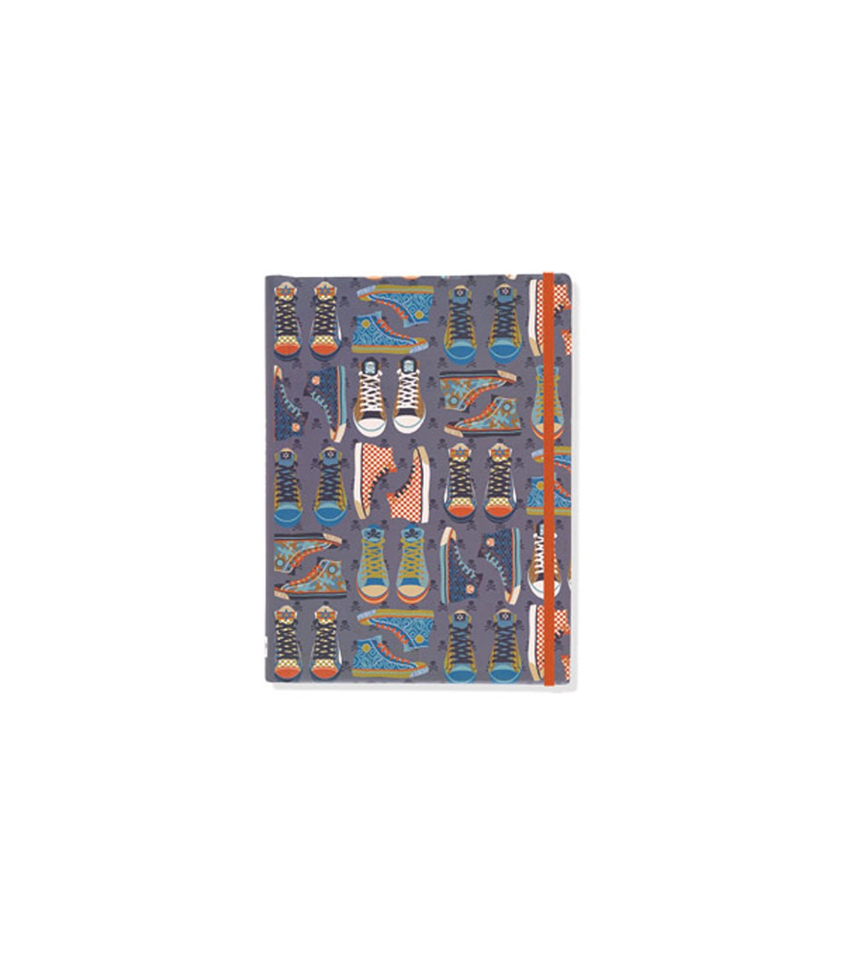 Carnet de notes fermeture à élastique format 16*21 - 160 pages, pages lignées. De format pratique, ce carnet fantaisie au décor de baskets estidéal pour tenir un petit journal.