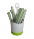 Ménagère couverts tendance avec support composée de 4 fourchettes, 4 couteaux, 4 cuillères à soupes et 4 cuillères à café. Ces couverts de table acidulés agrémenteront vos repas avec harmonie.