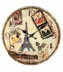Pendule murale en bois au décor Tour Eiffel. Diamètre : 34 cm, thème Paris.