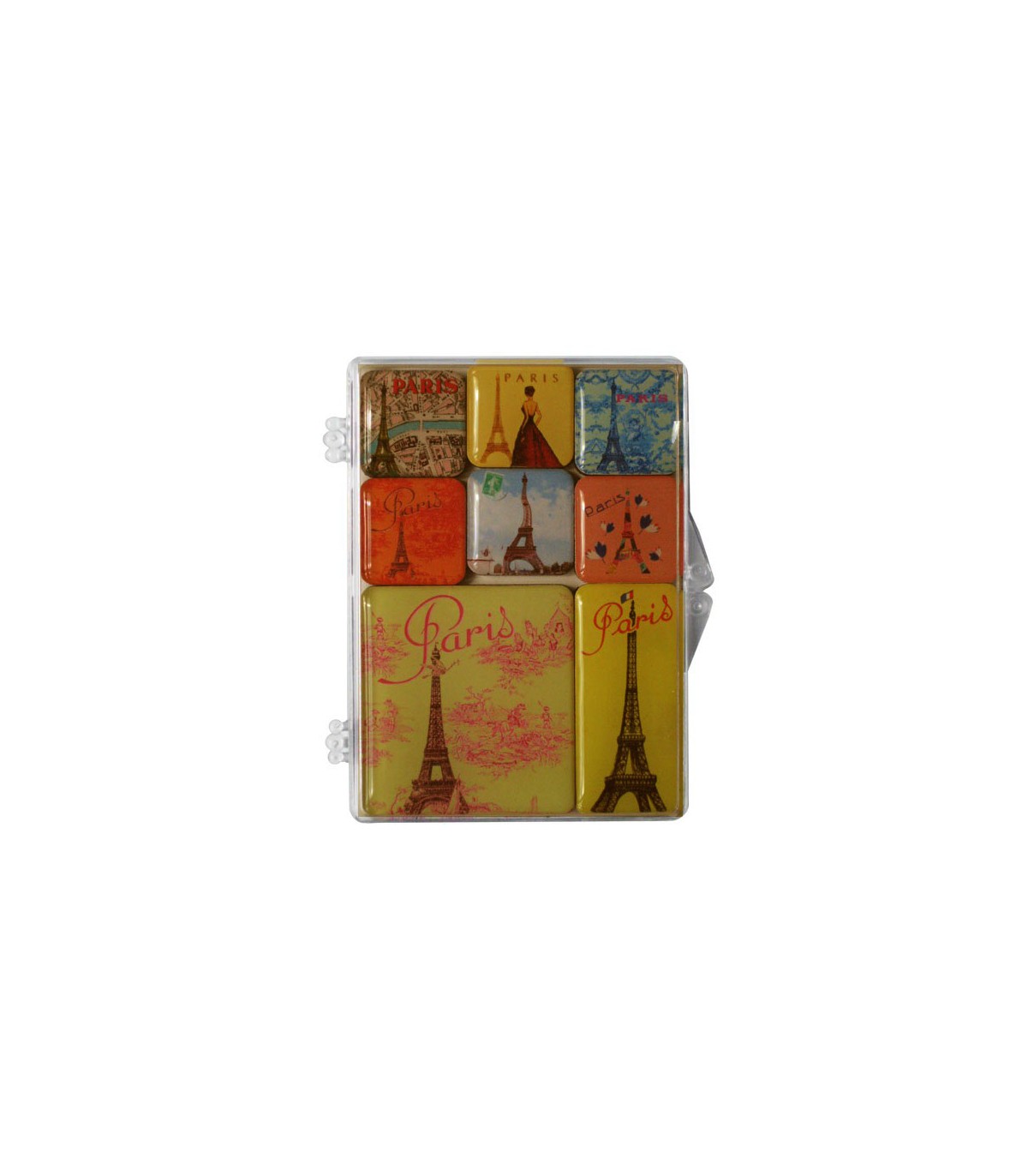 Set de 8 magnets Paris. Composants : Epoxy. Dimensions : 4 modèles en 2,2*2,2 cm, 1 modèle en 4,5*5 cm et un modèle en 2,2*5 cm. Ne convient pas aux enfants de moins de 36 mois.