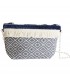 Pochette Jacquard avec chaînette. Composant : tissu jacquard bicolore. Dimensions : 21.5*13.5 cm avec un fond de 7 cm et une chaînette de 120 cm de longueur environ.