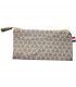 Trousse plate en toile doublée, fermeture zippée, finition pompon en cuir.